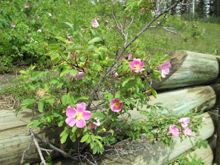What a beautiful view. I didn't take my camera with me when I went there with the class, so I was glad to stop there again to show Col this view. By the lake, we saw lots of wild roses blooming. By the highway too, I was happy to see colourful wild flowers blooming.